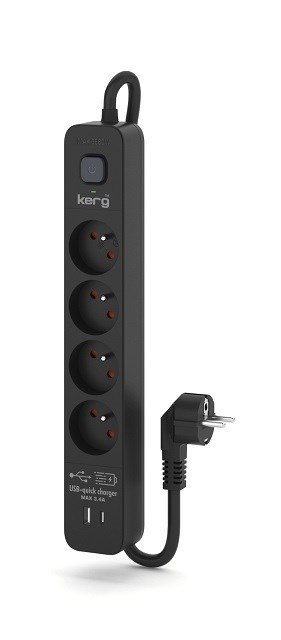 Listwa zasilająca KERG z wyłącznikiem-4 gniazda USBC+USBA 16A 1,5m czarny