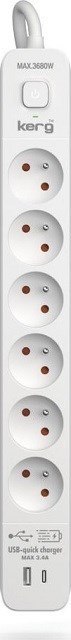 Listwa zasilająca KERG z wyłącznikiem-6 gniazd USBC+USBA 16A 3m